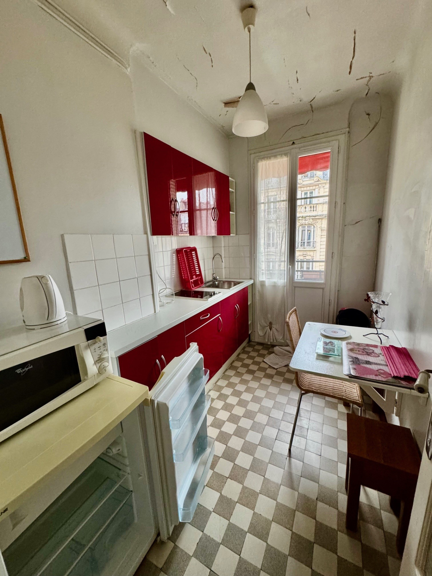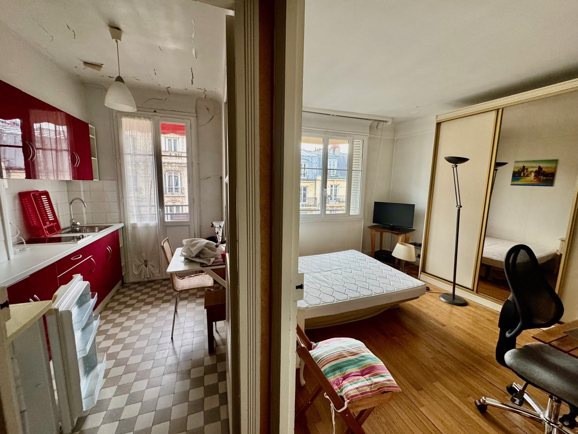 Appartement comprenant entrée avec placard, cuisine séparé, pièce principale, salle de bains, WC séparé. Cave en sous-sol